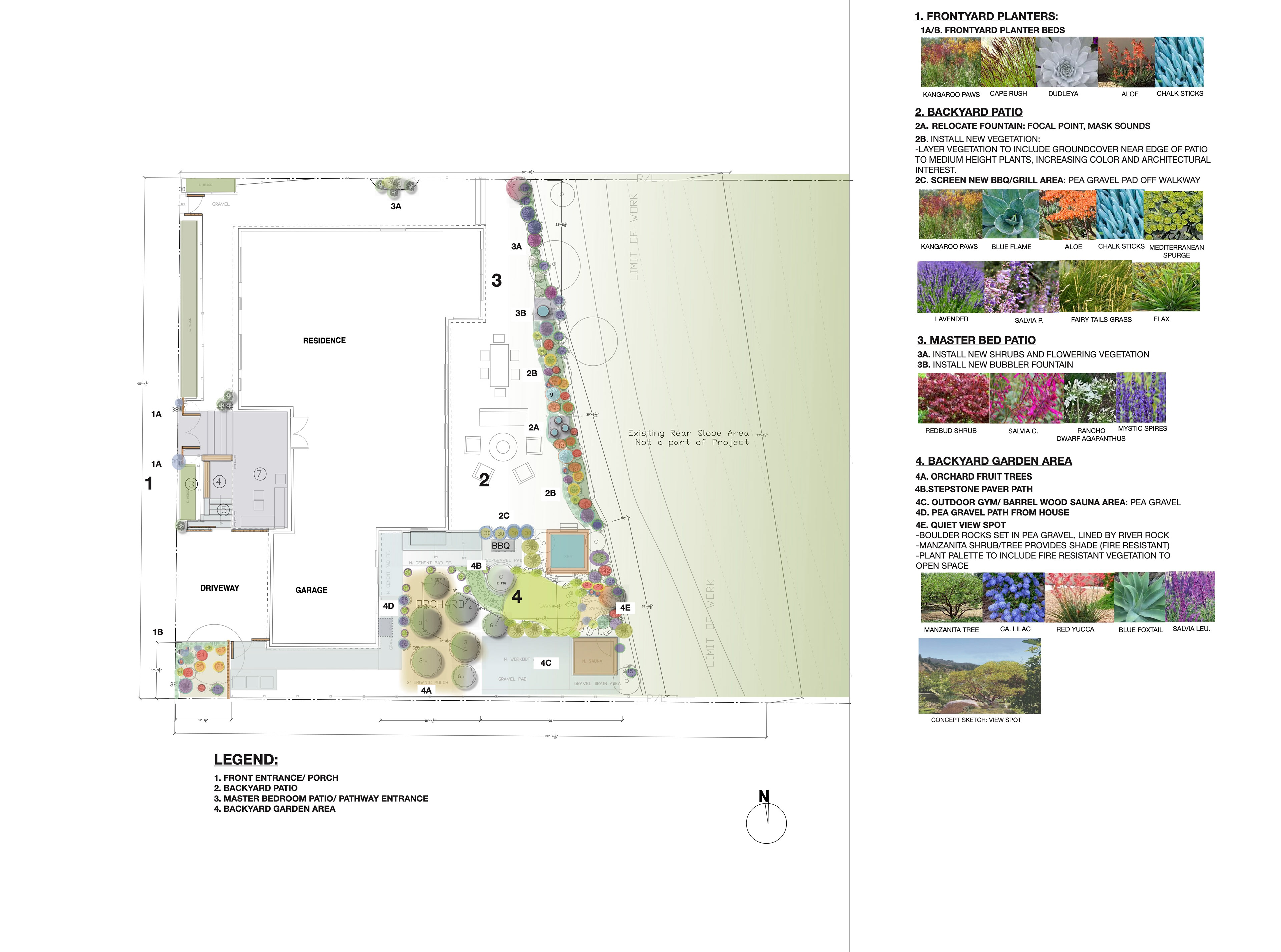 A series of wood walkways, or skywalks were designed to connect to the narrow concrete patio as view exoskeleton. The walkways hung near the edge of the property that overlooks the LA basin view, a skywalk view served as extra space to the narrow yard as well as lent cityscape views for summer evening dining. Since the property sat at the edge of a large dry brush open space slope, specific slow burning fire-rated composite timber was used. The plant palette to the property edge also acted as a fire break barrier filled with slow burning CA natives such as ceanothus, manzanitas, and succulents. A common practice we now use in firescaping.
